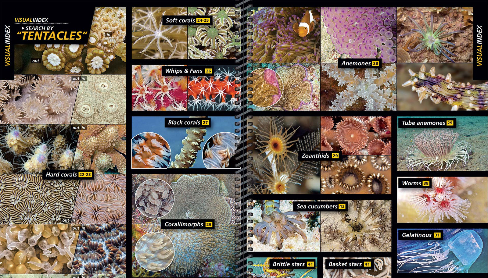 When it comes to ease of use the Reef Finder has no competition. Use the Visual Index to look for the shape of the critter in front of you, then choose a Gallery page to confirm. Think of it as Visual Hyperlinking – it’s a process we call WYSIWYLF – What You See Is What You Look For. The Reef Finder only tells you about things you can actually see. With no technical terms or prior knowledge required there’s nothing to get between you and learning. Take pictures and use the Reef Finder to ID your mystery beasties then use that knowledge to look them up in traditional field guides, making them more useful too! The Reef Finder – empowering the interested person to get results instantly!